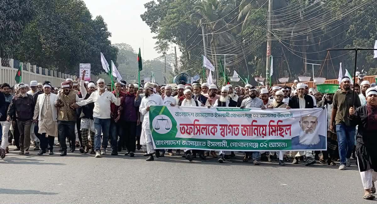 গতকাল বৃহস্পতিবার (১১ ডিসেম্বর) বিকালে নির্বাচন কমিশন (ইসি) কর্তৃক ত্রয়োদশ জাতীয় সংসদ নির্বাচন ও গণভোটের তফসিল ঘোষণাকে স্বাগত জানিয়ে আজ শুক্রবার গোপালগঞ্জে বিশাল মিছিল ও সমাবেশ করেছেন গোপালগঞ্জ-২ (গোপালগঞ্জ সদর উপজেলা ও কাশিয়ানী উপজেলার একাংশ ৭টি ইউনিয়ন নিয়ে গঠিত) আসনে জামায়াতে ইসলামীর দাড়িপাল্লা প্রতীকে মনোনীত প্রার্থী অ্যাডভোকেট আজমল হোসেন সরদার।