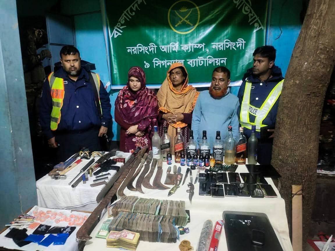 নরসিংদীর শিবপুরে যৌথবাহিনীর অভিযানে বিপুল পরিমাণ অস্ত্র,মাদক ও নগদ অর্থ সহ গ্রেফতার সাত