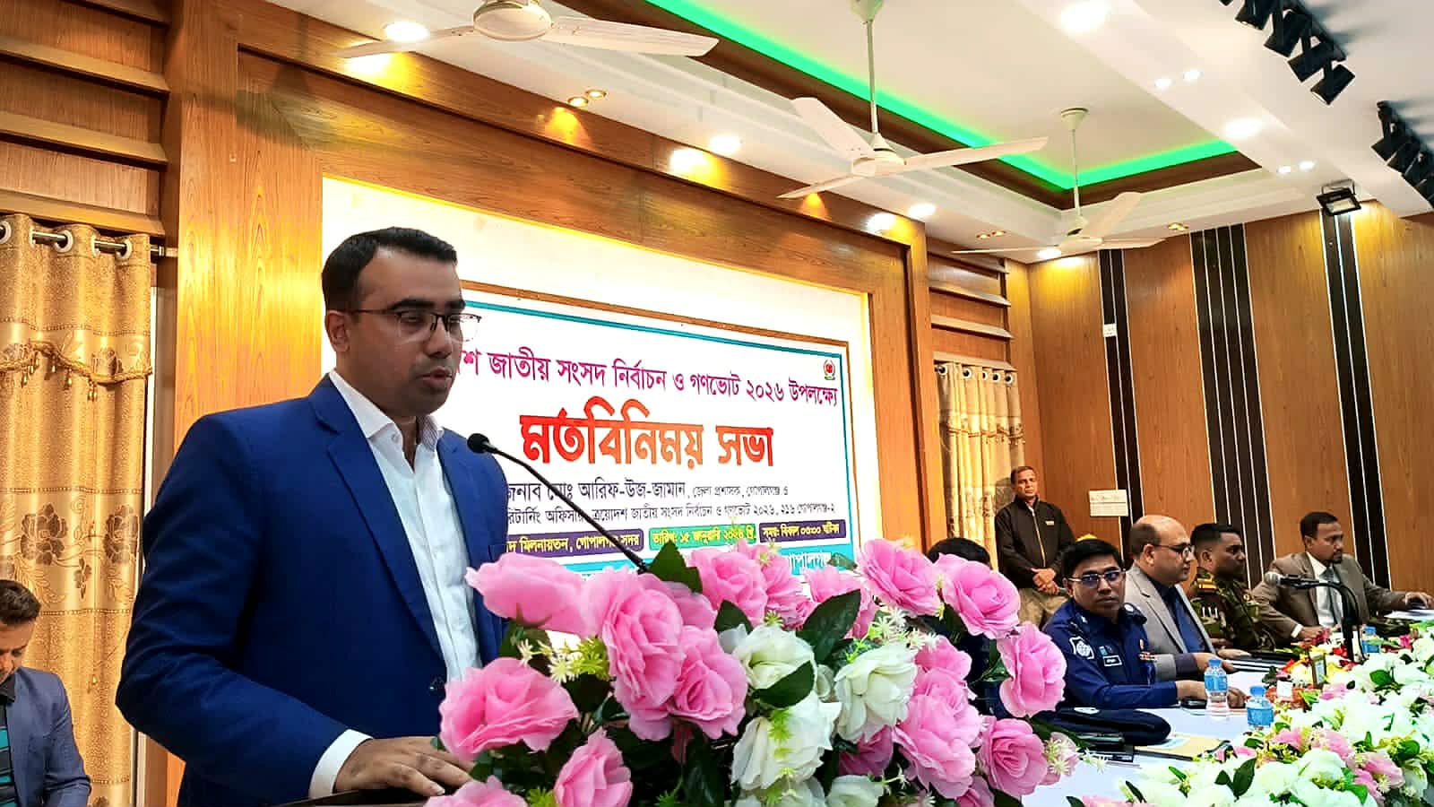 ত্রয়োদশ জাতীয় সংসদ নির্বাচন ও গণভোট–২০২৬ উৎসব মুখর পরিবেশের মধ্যদিয়ে অবাধ, সুষ্ঠু ও শান্তিপূর্ণভাবে শতভাগ নিরপেক্ষতার সাথে সম্পন্ন করতে গোপালগঞ্জ জেলা প্রশাসন সব ধরনের প্রশাসনিক প্রস্তুতি ইতোমধ্যেই গ্রহণ করেছেন বলে জানিয়েছেন জেলা রিটার্নিং অফিসার ও জেলা প্রশাসক (উপসচিব) মো. আরিফ-উজ-জামান। তিনি বলেন, “গোপালগঞ্জে নিরপেক্ষ নির্বাচন আয়োজনের লক্ষ্যে প্রশাসন সম্পূর্ণ নিরপেক্ষ ভূমিকা পালন করবে।