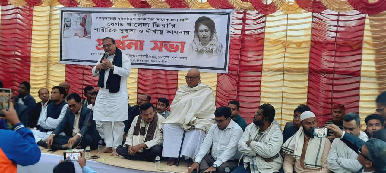 তিন বারের সাবেক প্রধানমন্ত্রী, গনতন্ত্রের মা, বিএনপির চেয়ারপারসন বেগম খালেদা জিয়ার শারীরিক সুস্থতা ও দীর্ঘয়ু কামনায় বিশেষ প্রার্থনা সভা আজ বুধবার বিকালে নামাচার্য শ্রী শ্রী ব্রক্ষ হরিদাস ঠাকুরের পাটবাড়ী আশ্রম বেনাপোলে অনুষ্ঠিত হয়েছে।