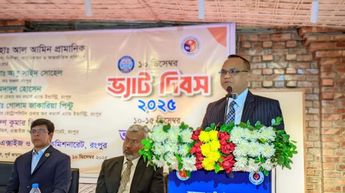 “ভ্যাট দিয়ে গড়ব দেশ, বৈষম্যহীন বাংলাদেশ” এই শ্লোগানকে প্রতিপাদ্য করে বুধবার (১০ ডিসেম্বর) সকালে ভ্যাট দিবস ও ভ্যাট সপ্তাহ, ২০২৫ উদযাপন উপলক্ষে আগামী চাষি রংপুর লিঃ, পূর্ব কামাল কাছনা, রংপুর এর কনফারেন্স হলে একটি সেমিনার অনুষ্ঠিত হয়। উক্ত সেমিনারে প্রধান অতিথি হিসাবে উপস্থিত ছিলেন জাতীয় রাজস্ব বোর্ডের সদস্য (কাস্টমস: নিরীক্ষা, আধুনিকায়ন ও আন্তর্জাতিক বাণিজ্য) ড. মোহাঃ আল আমিন প্রামানিক। বিশেষ অতিথি হিসেবে উপস্থিত ছিলেন কর অঞ্চল-রংপুর এর কর কমিশনার মোঃ আবু সাইদ সোহেল, প্রেসিডেন্ট, রংপুর চেম্বার অব কমার্স এন্ড ইন্ডাস্ট্রি এমদাদুল হোসেন, রংপুর; প্রেসিডেন্ট, রংপুর মেট্রোপলিটন চেম্বার অব কমার্স এন্ড ইন্ডাস্ট্রি মোঃ গোলাম জাকারিয়া পিন্টু। অনুষ্ঠানে সভাপতিত্ব করেন রংপুর কাস্টমস, এক্সাইজ ও ভ্যাট কমিশনারেটের কমিশনার অরুণ কুমার বিশ্বাস।