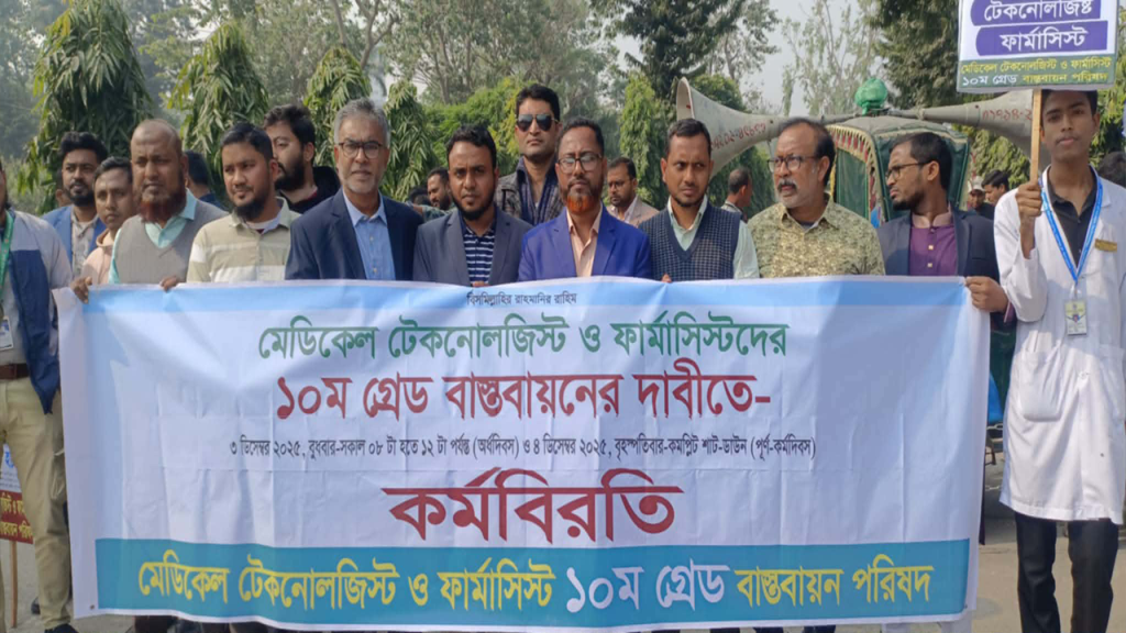 টেকনোলজিস্ট ছাড়া কোনো চিকিৎসা সঠিকভাবে সম্পন্ন হয় না। স্বাস্থ্যসেবা ব্যবস্থায় আমাদের ভূমিকা অত্যন্ত গুরুত্বপূর্ণ। কিন্তু দীর্ঘদিনের বৈষম্যের কারণে নিয়োগ প্রক্রিয়াতেও নেতিবাচক প্রভাব পড়েছে। দাবি না মানা হলে কর্মসূচি চলমান থাকবে।” বক্তারা আরও বলেন, “আমরাই একমাত্র সরকারি চাকুরিজীবী যারা পরীক্ষানিরীক্ষার মাধ্যমে সরকারের বিপুল রাজস্ব আদায়ে অবদান রাখি। কর্মবিরতির সময় কোনো রোগী ক্ষতিগ্রস্ত হলে অথবা মৃত্যুর ঘটনা ঘটলে এর দায় প্রধান উপদেষ্টা ও স্বাস্থ্য মন্ত্রণালয়কে নিতে হবে।” হুঁশিয়ারি দিয়ে তারা আরও বলেন, “অবিলম্বে আমাদের ন্যায্য দাবি বাস্তবায়ন করতে হবে।