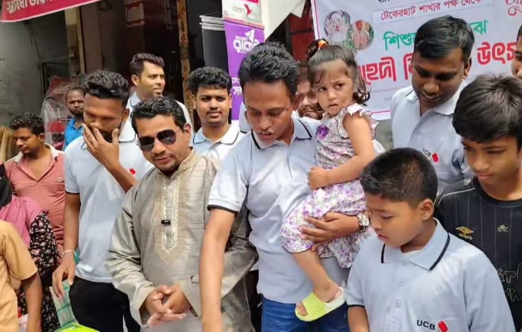 ঈদ উপলক্ষে ইউসিবি ব্যাংক টেকেরহাট শাখার উদ্যোগে ৫০০ শিশুকে মেহেদী বিতরণ