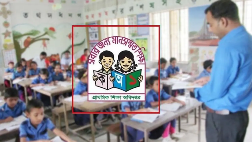 প্রাথমিকের শ্রেণিকক্ষে পাঠদান ও অধিদপ্তরের লোগো। ছবি : সংগৃহীত