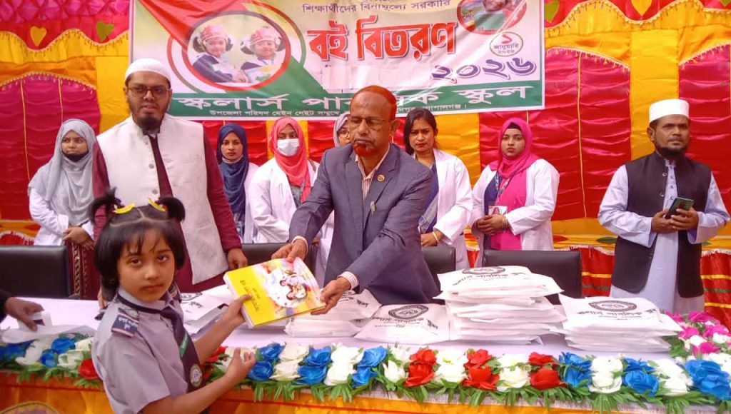 মুকসুদপুরে স্কলার্স পাবলিক স্কুলের শিক্ষার্থীদের মাঝে বিনামূল্যে বই বিতরন